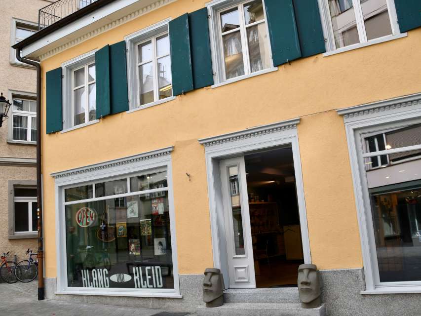 Frisch renoviert an der Kugelgasse 5 / Brühlgasse 18 steht ein gepflegtes, gelbes Gebäude mit grünen Fensterläden. Im Schaufenster prangen die Wörter «Klang und Kleid» und alte Schallplatten sind zu erkennen. Ob junge Punks oder ältere Damen – im Klang und Kleid sind alle willkommen.